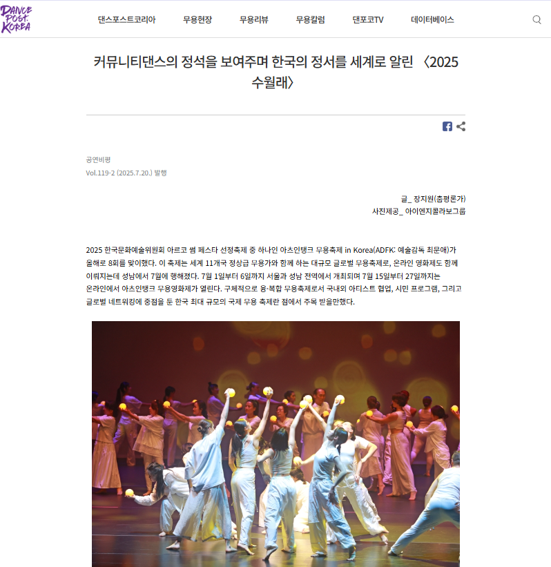 LA 댄스 페스티벌 1차 연구·쇼케이스 공연 진행, 한국–캐나다 수교 60주년 기념 국제 공동창작 《수월래》 시작